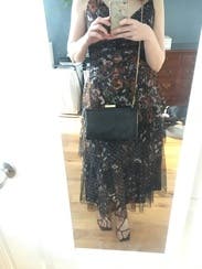 Perfect clutch with optional chain strap. Holds a phone, loose credit cards/cash, but no room for sunglasses/large wallet. Perfect for an evening formal event. Would rent again!