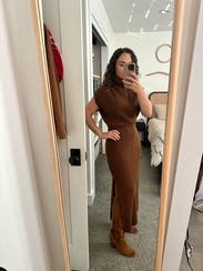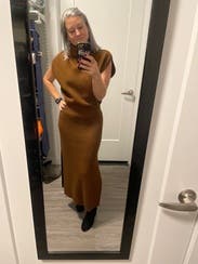I wore it twice. I love a good sweater dress and this one was truly flattering. I probably could have went down a size if I wanted it to accentuate my features more.