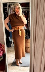 I needed a belt to hold the material sort of slouched over, otherwise it didn’t hit in the right spot on my hips. For how thick the material was, I thought it still showed some lumps and bumps with no shapewear. Not my favorite piece for my body type!