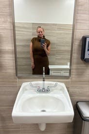 I really liked this dress but felt the weight of the material caused it to stretch more than I would’ve preferred. I sized down but think I could’ve sized down even more. Still loved the color and style! Perfect for a Fall baby shower & work.