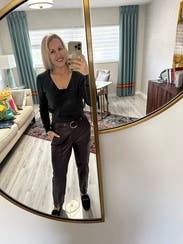 Threw this in because I had a bonus rental. It was a little low cut for work so I added the button down. It would look great alone with jeans for date night. Simple but fits great and is flattering.