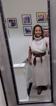 This dress was so comfortable. It fit in the most sophisticated way... I wore it for a regular work day and still received compliments via my zoom meetings. Rent it!!