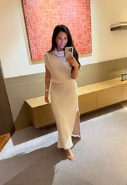 A cozy turtleneck and sleeveless design define this elegant midi dress by Splendid. The soft knit texture and side slit add a relaxed yet sophisticated vibe. Pair with sleek boots to complete the look for a day out or a casual evening.