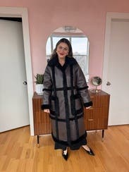 Really cool coat. It's definitely heavier and bigger but that was part of its appeal to me. It's as warm as an actual down coat designed for the coldest winter temps, but it does the trick on a cold night out when you want to elevate your look. It's a bit of a showstopper!