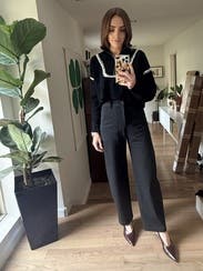 The STAUD Hampton sweater is just the OG sweater. I own this style in multiple prints/color waves and still rent whatever new color/fabric RTR has available because I love it that much. I wear it more as a top rather than a layering piece, but it works for either. It’s the perfect crop length and on me, longer in the front than the back (creating this sort of cropped arch that billows out behind you). I get compliments on the Hampton sweater no matter which one I’m wearing. It’s just the girls’ go-to that you always reach for. This one is super warm. It’s 35 degrees today and I was super cozy in it with only a light coat over it outside. I paired it with trousers from RTR and the look would have worked for a corporate office setting too. If you’ve never tried the Hampton sweater, do it! You’ll end up adding it to your “purchase Heart List”…TRUST
