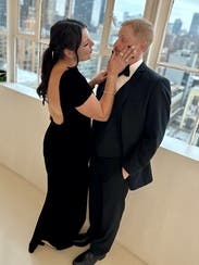 Beautiful black velvet dress. Perfect for an evening black tie wedding in the Texas Hill Country. Wear an 8R. Love the dress.