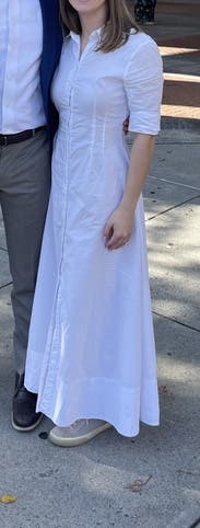 This is a lot of dress, but actually has a nice / flattering silhouette. Def giving nurse / Diane Keaton vibes. It grazed the ground for me in sneakers (looked better with heels!) so might be tough if you’re shorter.
