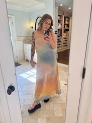 Wore this to a sorority event and sized up because I hate when flowy dresses are tight, but probably would have been fine staying with my normal size.