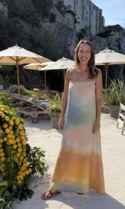 This stunning ombré dress is perfect for a vacation or summer event. The flowing, lightweight fabric creates a beachy, effortless look. Easily dress up or down! I wore the XS but next time would rent the S. Zipper is tight around the bust. FYI it does wrinkle (linen, duh) just make sure to hang it immediately after traveling! follow for more pics & videos @whimzylindzy