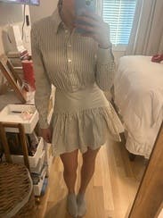 Loooooved this little dress. Originally ordered for work (would’ve been too short on me for work) so wore on gameday and received so many compliments! The waist and stripes are so flattering. Loved.