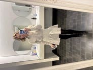 This dress has an interesting yolk below the waist and the skirt flares from there. I received this new with tags. I thought I was going to be going someplace cold so I rented it, but I didn’t end up wearing it at all. I left the tags on for the next person.. this would be a great work dress. Petite friendly.