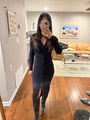 Loved this dress and the fit. I wore with navy nights and brown boots.