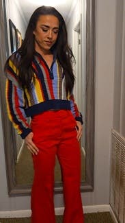 This was my absolute favorite rental of the month. This sweater was so fun to wear, easy to style. I loved the color and the cut it was cropped but not too cropped. I would size down for a tighter fit