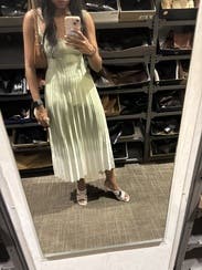 Perfect color and fit. Loved this dress for a trip to Charleston