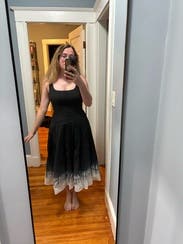 I wore this on my trip to Europe and felt so feminine and stylish. I've worn this brand before, so I knew to size down. It fit my curves perfectly and I loved the flared skirt and white trim. Because its close to the bodice I should have worn shapewear. As a petite person, the straps were 1-2 inches too long but it was still manageable.