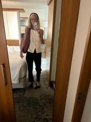 Loved this top for making me feel pulled together for a dinner. Slightly tight across chest.