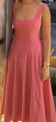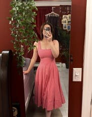 I wore this dress to my valentines themed bridal shower and loved it so so so much. The color is even more beautiful in person and the fit and fabric are amazing. Perfect for a daytime event and is perfect for spring and summer.