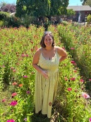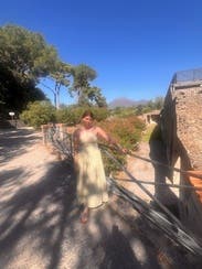 Loved it so much I bought it! In the photos, I thought the print was lemons, but they're actually tomatoes which I loved even more. The cut was so unique and flattering. Originally rented it in a 12 because that's all that was available, but I needed my true size. I wore it so much that when I saw a 10 was available, I immediately purchased. I've received so many compliments while wearing. Truly one of my favorite dresses of all time.