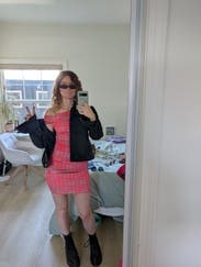 Wore with sneakers and a cardigan to tone it down a notch but could also be a great club/ night out look! Wore for a Pride drag show at a local museum evening hours event