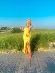 Got so many compliments- this is such a fun bag to wear to a wedding. I wore it with the yellow derek lam dress.