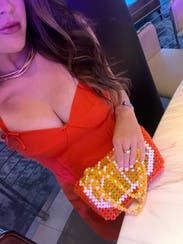 I ordered this for my bachelorette party and spent a week telling my friends about what I called "the stupidest little bag in the best way possible." This bag is so impractical--it doesn't close, and it's made out of beads--but it's the cutest thing, and it added a super fun element to an otherwise basic outfit. Would totally rent this or another Susan Alexandra bag again.