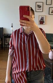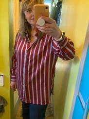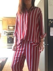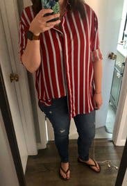 PJ style shirt that was a fun wear for Memorial Day weekend with the trio of colors. Large loose fit by design super cute with jeans.