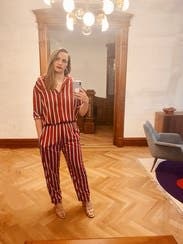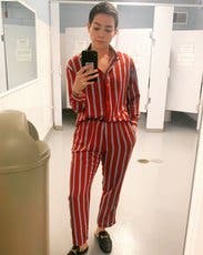 I had been waiting to rent this piece with the coordinated bottoms for some time and was so excited to finally get to wear it. And it was just fine. I thought the fabric was going to be more satiny but it felt like polyester. And it just felt frumpy and not as pulled together as I had imagined it would be. Not for me.