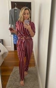 I sized up on this but probably didn't need to as the top is oversized in nature as it is; but I loved wearing this with the matching bottoms. Could be dressed up and worn out as well as used for an at home cozy look.