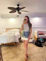 The colors were really cute with white jeans. The fit was good and I loved the open back. It was just a little big, but still wearable. Ideally I would have sized down one.