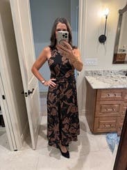 Wore this for work, just note it’s definitely a maxi length. Fun pattern and flattering fit.