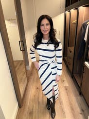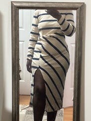 A fun twist on a striped dress. Loved the design and material. Was comfortable and perfect for a cool night in Vail.