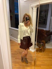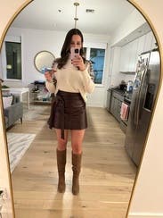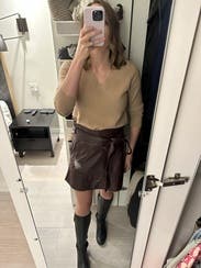 I didn’t get to wear this unfortunately because it was too short for an office setting IMO. but I absolutely loved it and wished I had weekend plans so I could wear it. I’ll probably rent again for a date night. Leather was so soft and malleable.
