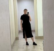 I liked the ease of this dress, but I need a petite version. The proportions were off and everything was too long. Comfy material and flattering. Also might just be me (lol) but I got really sweaty in this dress...
