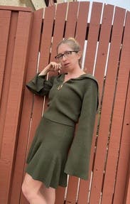 I kept this as a set for months with the skirt. I wore the sweater both with the skirt and by itself with high waisted pants. I received so many compliments both ways! I loved the bell sleeves and the bounce back of the knit.