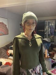 Soooo I wanted to love this sweater. It’s a gorgeous color, the zipper is so unique. But something was a little off. It’s really short in the torso but it worked for me because I have a short torso, but even I had to keep pulling it down. The back part that looks like it’s a cape, is super heavy! BUT beware in the wind, it kept flying up and hitting me in the head. Then the sleeves were extremely long. They’re also wide which isn’t a problem but I already have abnormally long arms so the fact the sleeves were too long for ME? Very interesting. But I loved it for what I rented it for, a photoshoot! I personally will not rent again for a day to day top.