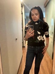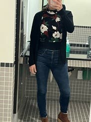 Loved this piece. Easy to dress up or down. Hits just below the waste, so required pairing with my highest wasted denim.