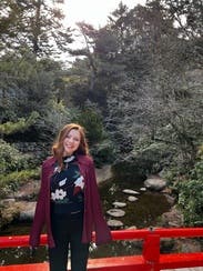 I am not a fan of short sleeve turtlenecks generally, but love this pattern and loved it with a white skirt on this spring weather day!