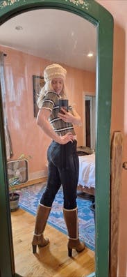 Very flattering, retro 90s vibes. "Ribbed" material but thick so it doesn't show every imperfection.