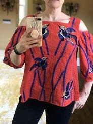 This top was everything I was hoping it would be! Great bright bold colors, amazing eyelet/embroidered details and very versatile/comfortable! The only warning, the birds are see through but not indecently so...!