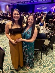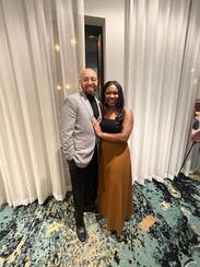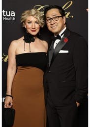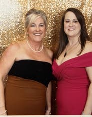 This gown was a good fit all around. The black bodice fabric has a little stretch which is nice. The gown has a really nice drape and was super comfortable. If I were to rent this gown again I would probably add a Medium as my backup size. Accessorized with pearls, black suede pumps a simple black wrap and a tortoiseshell evening clutch.