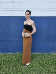 I'm usually a 6, I got a 6 and prob could've used a long just for my belly. I'm about 7 months pregnant and wore it to a banquet. It's stretchy and comfortable and I got a lot of compliments. Highly recommended