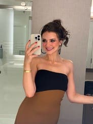 This is such a great dress, and even prettier in person. The cut is simple but falls really nicely, and the dual tone really elevates the look. It’s even prettier in person. My one complaint is that the skirt is viscose and really holds onto wrinkles. The fabric is thick enough so that they aren’t super noticeable, but if wrinkles bother you, plan on having it streamed when you get it from RTR - a standard iron won’t cut it.