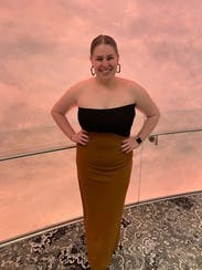 I both liked and disliked this dress! It felt modern and classy and I wore it to a wedding in Arizona so it fit the vibe. But it didn’t always flatter my body, particularly in the stomach area. This was the only picture I liked of the dress. I had to delete all the others. But outside of some bad pictures, I still felt elegant. If you’re more confident than me, you could definitely have a moment in this dress!
