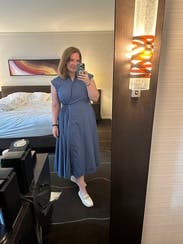 Wore this dress for a work event where I was speaking on a river cruise for a training for clinicians and spending the afternoon networking. The dress was so flattering and comfortable.