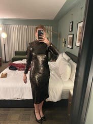 Got so many compliments on this dress! The sequins catch the light which adds to the fun. Kept me warm, too! Only issue is I would’ve liked the arms to be longer, but that wasn’t a deal breaker.