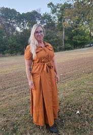 Love the color and the idea of this dress. The extra fabric on the bottom would be elegant without the stitching to like pull it up. But having said that… this is my second time renting haha. Love this color for fall.