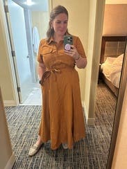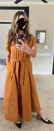 This was a nice dress for a fall day out. It was a little tight when I sat down so I maybe should have sized up. Overall, it was a simple dress in a lovely color.