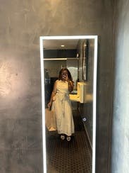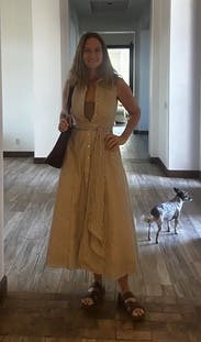 This is a fan favorite!! I felt so dainty wearing this and it easily worked for a weekend out and about as well as in the office. It is a little tight in the chest and I am by no means heavy chested, but it didn’t ruin it for me. Also very long. It stopped at my ankles. I wore flat sandals but if you’re shorter than me (5’4) a heel would be ideal.
