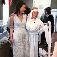 This outfit looks so much prettier in person, pictures don't do it justice. The lace is gorgeous. I got a lot of compliments on my outfit. I will say the fabric is a little heavy so if you're going to be outside in hot weather, that is something to consider. Also the straps are a bit long, and I'm only 5'2, so I did spend quite a bit of time pulling them up. I'm more modest, so I put a pin in the center to hold some cleavage in, since I wear a 34DDD and the cut is rather low in front. However, it was comfortable, easy to dance in, great length and I could wear a regular bra. Would definitely wear again!