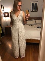 I wore this jumpsuit for my rehearsal dinner and absolutely loved it. I wanted to keep it for myself. The lace is gorgeous and amazing quality. I received so many compliments on it and I would absolutely rent it again.